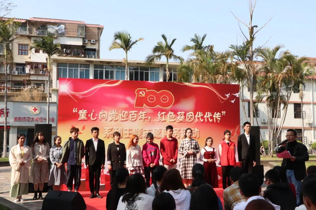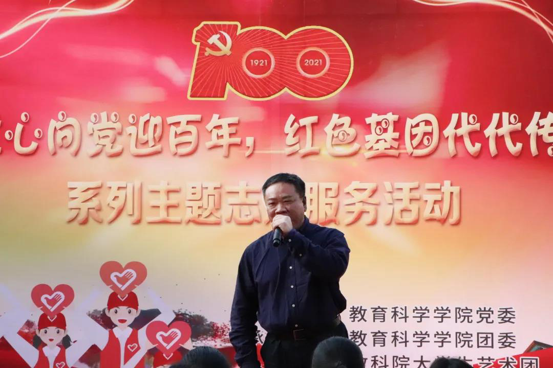恰逢喜迎建党一百周年,为大力弘扬爱国主义精神,缅怀革命先烈,引导青少年坚定理想信念,将红色基因融入血脉,学院党委创新党史学习教育形式,精心策划推出了“童心向党迎百年,红色基因代代传”主题系列志愿服务活动。3月25日下午,活动启动仪式于10号楼前广场举行,学院领导班子、专任教师代表及政工队伍出席,与志愿者们一同参加仪式。