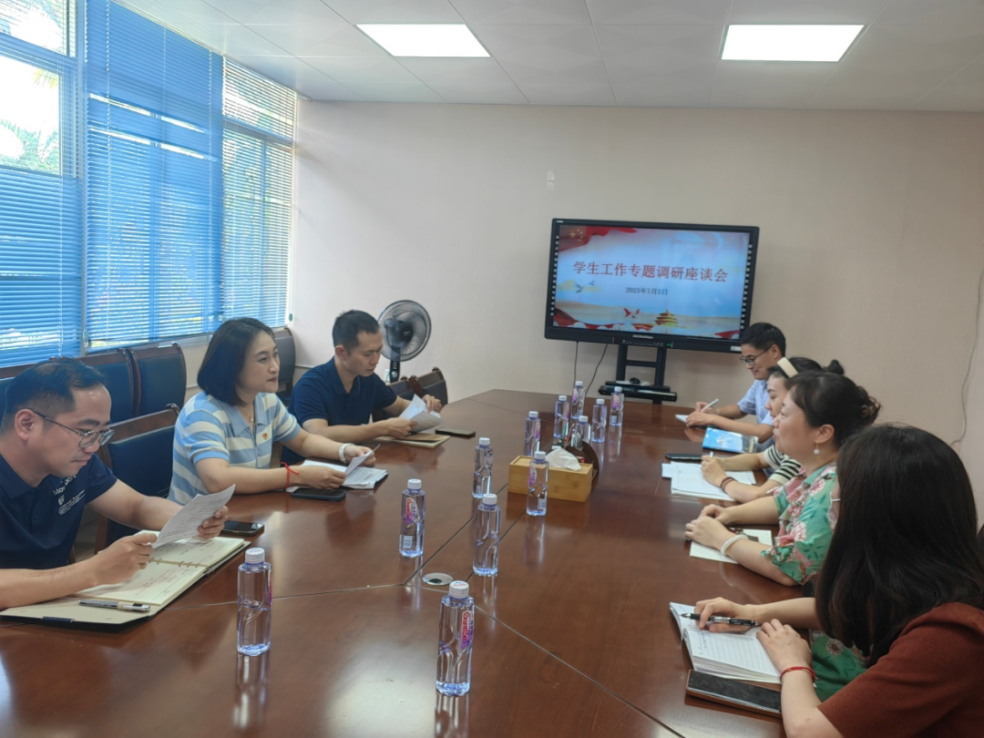 会上,杨君玉副书记对学生处一行的莅临指导表示欢迎,并介绍我院主题教育、学生就业和职业生涯规划、“三全育人”、学生日常管理、心理健康教育、辅导员队伍建设等工作开展情况,分享经验,提出问题,与会双方进行了充分交流和深入探讨。