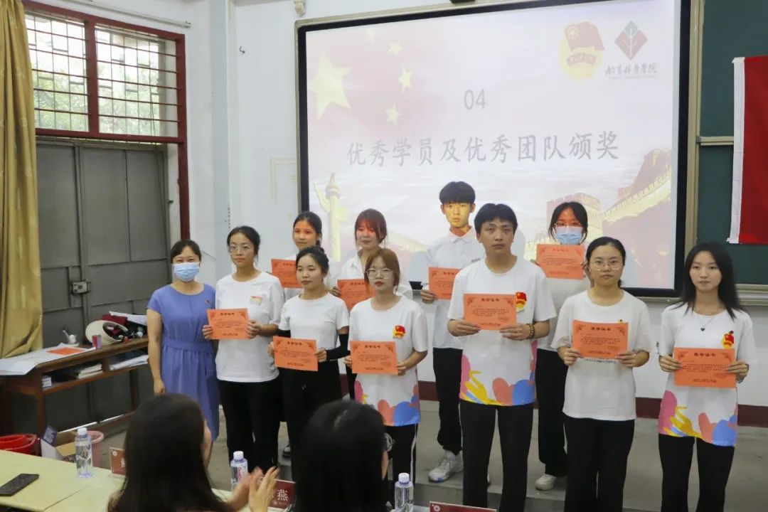 院党委副书记杨君玉老师、19级辅导员陈雅玲老师为获奖集体和个人颁发荣誉证书。相信他们会牢记此次学习经历,并在以后的学习工作中不断提升自我,锤炼过硬本领,用汗水浇灌收获,以实干笃定前行,努力成长为堪当民族复兴大任的时代新人。