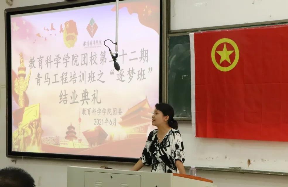 院团委书记夏丽君老师对本期培训班学员提出四点期望:一是“心中有阳光,脚下有力量”,学生干部要脚踏实地,不断通过实际行动,以知促行,知行合一;二是“聚是一团火,散是满天星”,希望本期青马学员,如同星星之火一般,去带动、感染周边同学向上向善,共建美好教科;三是“一个人可以走得快,一群人可以走得远”,每个人都离不开集体,将小我融入大我,心怀大家,服务大家,多做贡献;四是希望大家能一直保持终身学习的习惯,努力提高个人素养,成就更加完美的自己。
