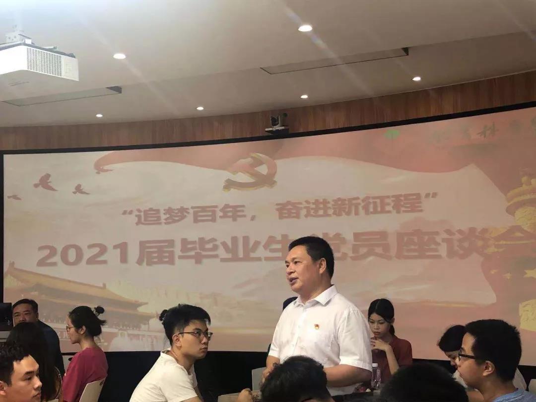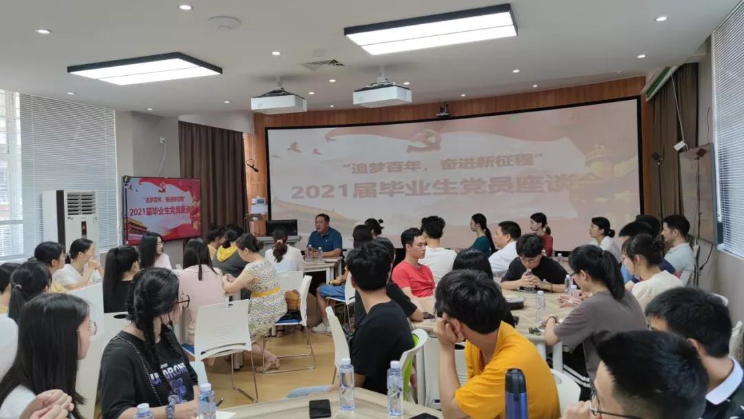 座谈会后,党委副书记杨君玉为党员们上了题为“学党史 感党恩 潜心筑梦 放飞理想”的党史学习教育专题党课,她带领党员们回顾了百年党史光辉历程,重温党章,号召同学们在党史学习教育中汲取智慧和勇气,毕业后到新的工作岗位上继续坚定理想信念,践行初心使命,爱国敬业,诚信拼搏,不忘院训“正心明德”,保持清正廉洁,清清白白做人,踏踏实实工作,为实现“两个一百年”奋斗目标、实现中华民族伟大复兴的中国梦贡献智慧和力量。