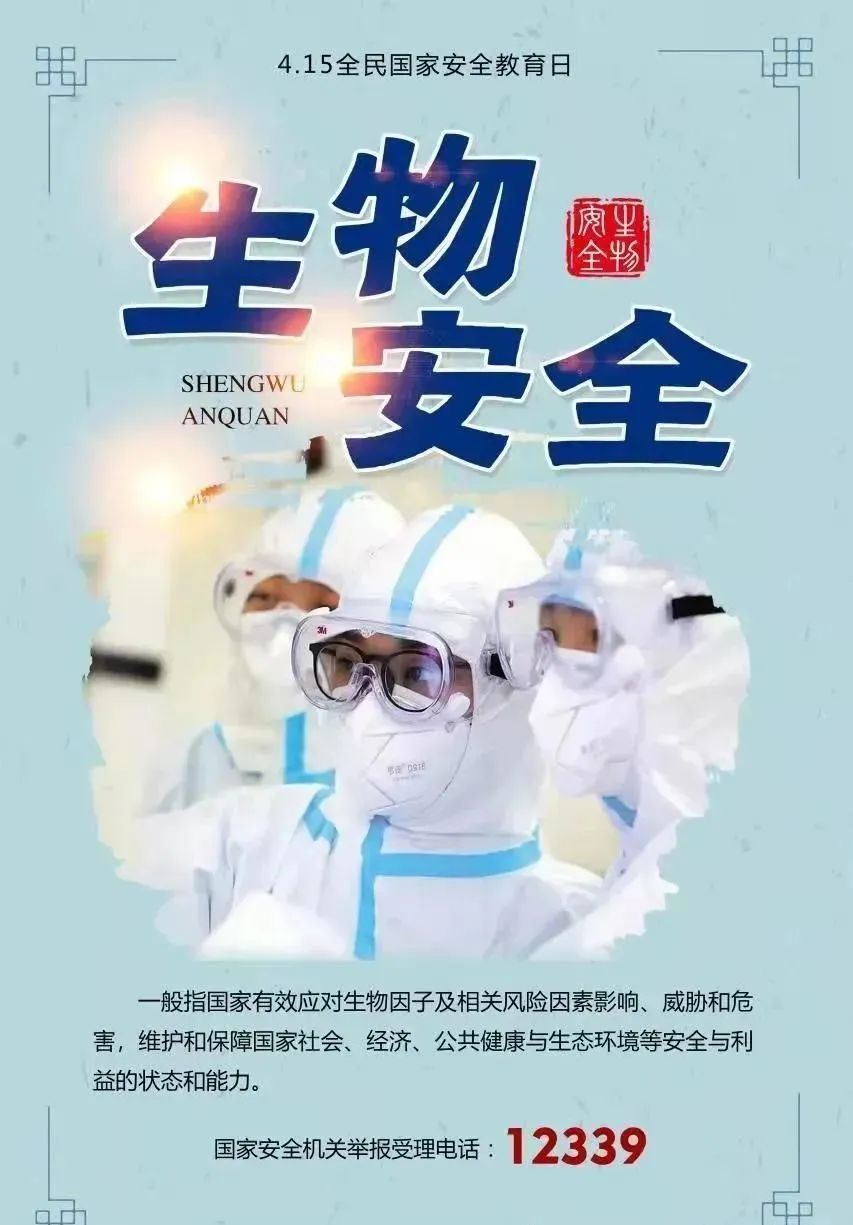 2020年2月14日,习近平总书记在中央全面深化改革委员会第十二次会议上强调:“要从保护人民健康、保障国家安全、维护国家长治久安的高度,把生物安全纳入国家安全体系,系统规划国家生物安全风险防控和治理体系建设,全面提高国家生物安全治理能力。”至此,我国国家安全领域主要包括政治安全、国土安全、军事安全、经济安全、文化安全、社会安全、科技安全、网络安全、生态安全、资源安全、核安全、海外利益安全、太空安全、深海安全、极地安全和生物安全等领域。