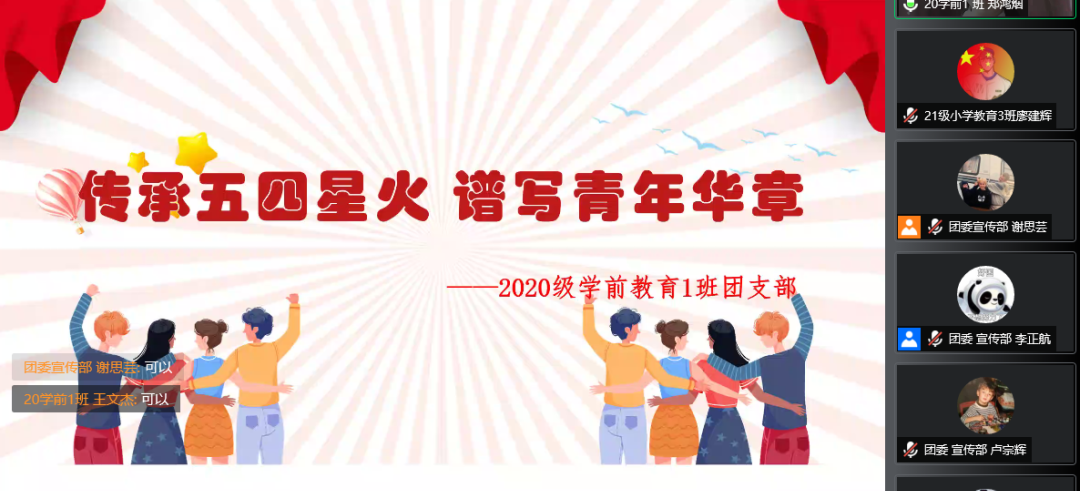 所有参加汇报的团支部通过PPT讲述、成果照片展示以及微视频等方式,围绕政治基础好、组织基础好、班子建设好、工作效果好、团员青年反响好等五个方面,展示了各自团支部的特色与青春风采。经评委老师打分与团员线上投票,拟推荐19学前1班团支部、19教技团支部、19学前2班团支部、20教技团支部参选2021年度“校五四红旗团支部”。