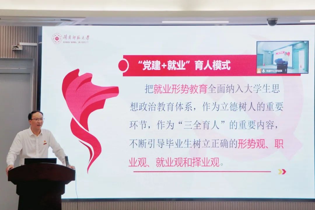 校招生就业处处长林贵东以党的二十大报告提出的就业优先战略及政策为切入点,分析当前就业形势,阐明就业是最大的民心民生工程,深入解读“党建+就业”育人模式的内容。他希望教师党员们要强化“三全育人”理念,深入推进就业育人多渠道,全方位宣传国家就业政策;学生党员要努力提高个人综合素养,积累实践工作经验,练就过硬本领,以新时代筑梦人的英姿投身社会主义现代化事业的火热实践中。