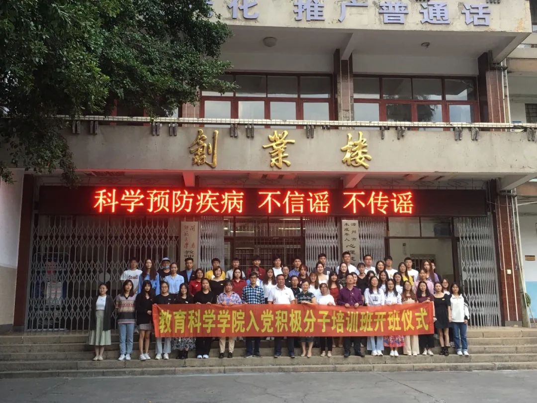 为贯彻落实习近平新时代中国特色社会主义思想和党的十九大精神,进一步加深入党积极分子对党的认识,提升理论知识修养,教科院党委于11月19日下午在逸夫楼405举行第十八期入党积极分子培训班开班仪式。院党委书记郑文海教授、党委副书记杨君玉老师、团委书记夏丽君老师、党委组织员唐福灯老师以及各年级辅导员出席本次开班仪式。