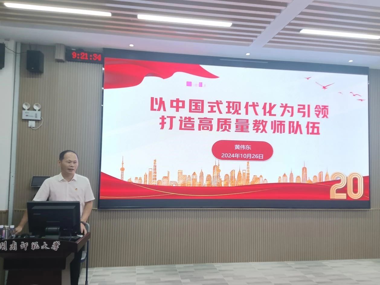 近日教师工作部(人事处)部(处)长黄伟东为分党校第六期正式党员培训班作了题为《以中国式现代化为引领 打造高质量教师队伍》的专题党课。