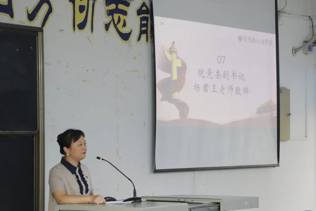 2022级心理学专业蔡诗淳作为学员代表发言,她表示将会珍惜本次学习机会,以优秀党员的标准严格要求自己,呼吁全体学员牢记习近平总书记对青年人的嘱托,勇毅前行,做担当民族复兴大任的时代新人。