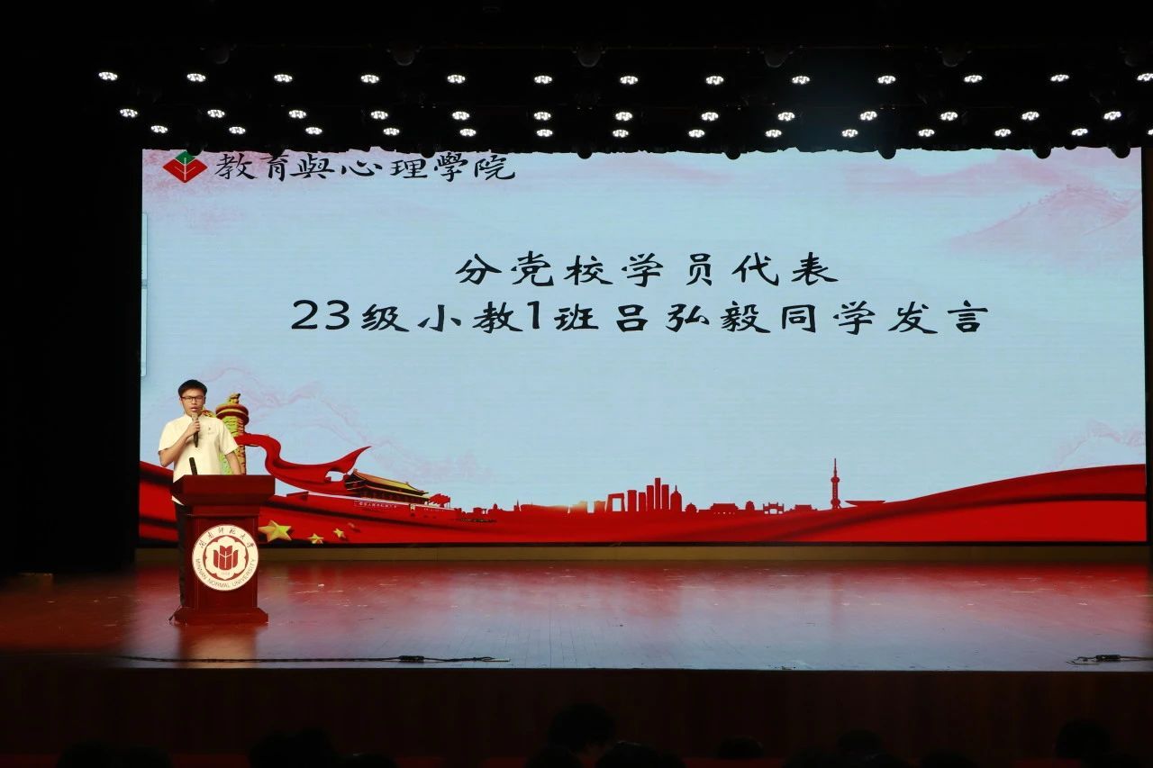入党积极分子培训班领队王文伟老师宣读了分党校学员规章制度,2024级小学教育专业吕弘毅、2022级小学教育专业许雪莹、2024级心理专业许文静等分别作为代表发言。