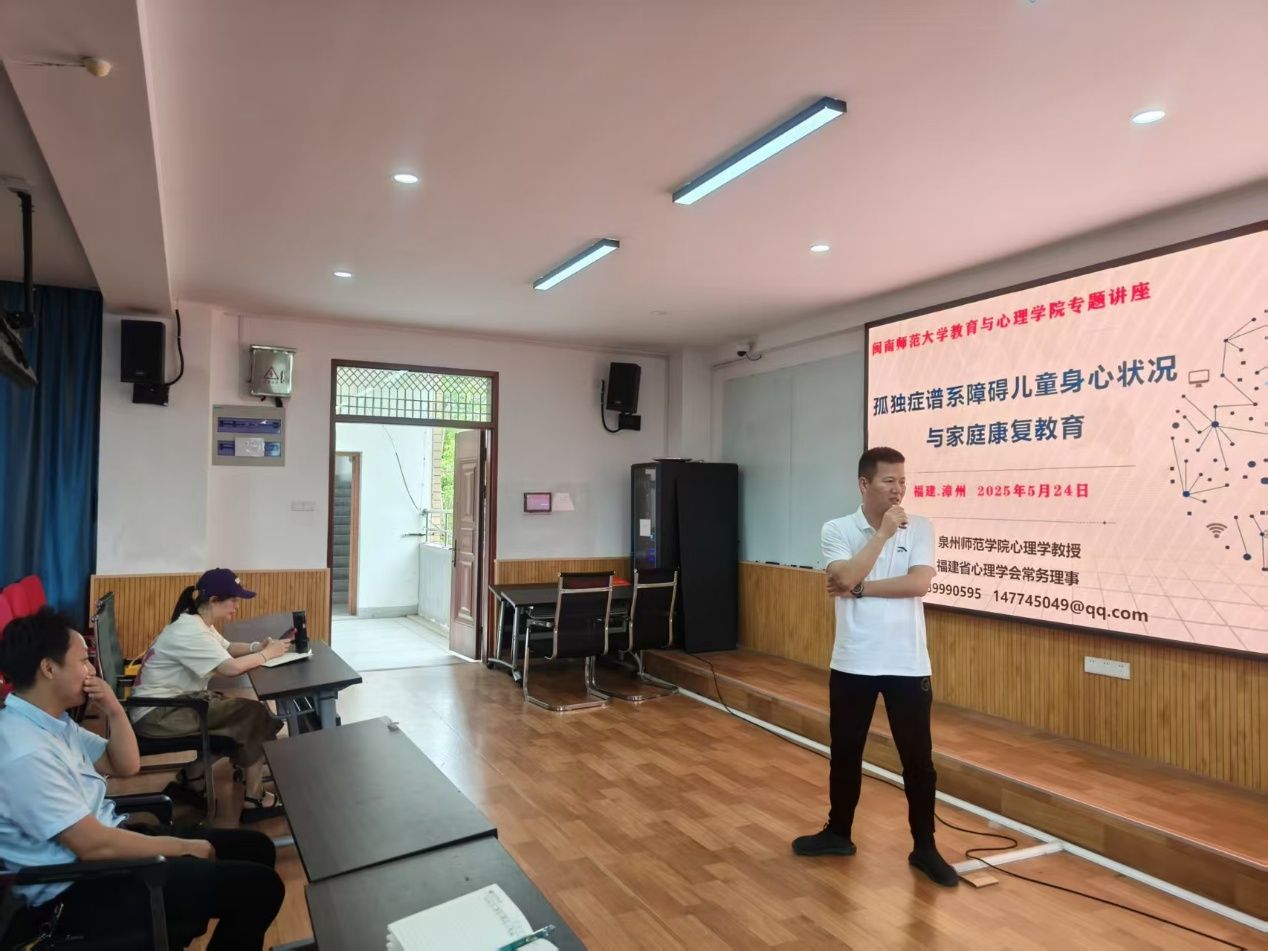 5月24日上午,泉州师范学院陈奕荣教授受邀为我院开展《孤独症谱系障碍儿童身心状况与家庭康复教育》专题学术讲座。会议由黄亮副院长主持,我院相关专业教师、研究生参与此次会议。