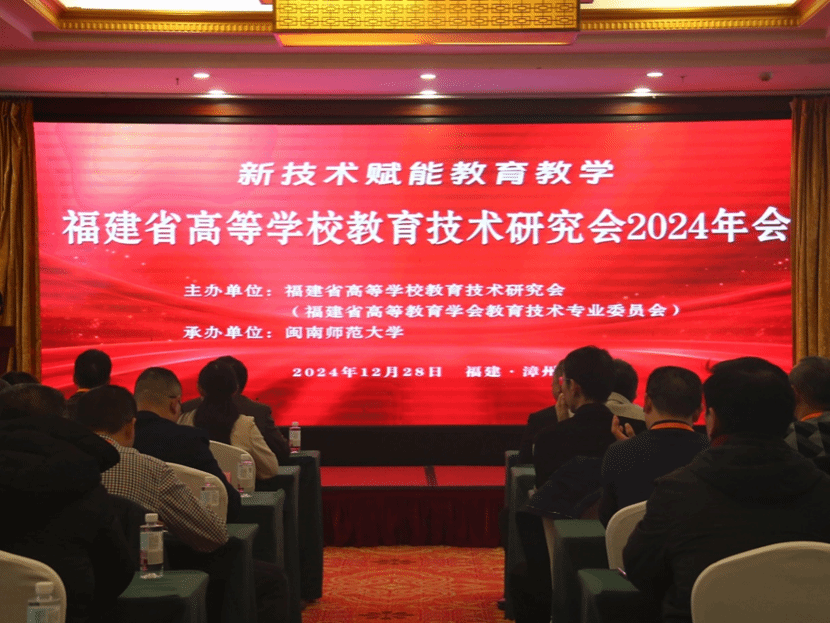 为了深入学习贯彻党的二十届三中全会精神及全国教育大会精神,12月27日教育部召开2024年全国教育数字化工作总结会之际,福建省高等学校教育技术研究会2024年会暨代表大会于12 月 28日在漳州顺利召开。本次年会由福建省高等学校教育技术研究会主办,yl23411永利承办。以“新技术赋能教育教学”为主题,围绕教育数字、新技术等主题邀请省内外专家开展3场专题学术报告会,20余家企业到会展示教育技术新产品,6场新技术分享会。福建省高教学会副会长兼秘书长黄跃鹏、yl23411永利集团院长陈顺森、福建高校教育技术研究会副理事长范新民以及省内高校代表100余人出席会议。