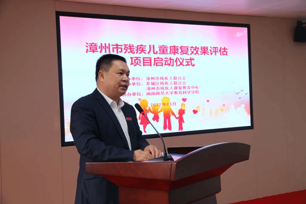 汪清桦在致辞中指出,残疾儿童康复效果评估是我市残疾人事业发展中的一件大事,也是一件惠及广大残疾儿童,充分体现爱心、温暖人心、凝聚民心的好事。漳州市委市政府高度重视残疾儿童康复工作,为改善残疾儿童康复条件、提升康复效果推动出台了一系列的惠残助残政策。汪清桦对本项目试点工作开展提出三点要求,即发挥示范引领作用、推进机构提档升级、规范效果评估管理。