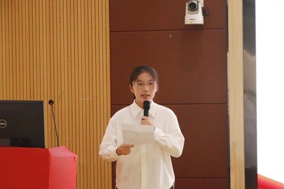 24教技师范班项睿作为团校学员代表上台发言。她承诺,在接下来的培训中将做到以下几点:一、珍惜学习机会,淬炼担当精神,以科学理论铸就精神脊梁;二、提高政治站位,把牢思想航向,在真理的感召下坚定前行;三、增强自我本领,彰显青春动能,做到既有理论深度又有实干精神。