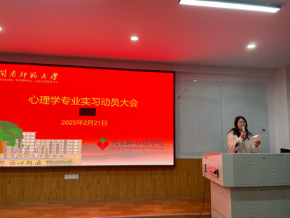 心理学系副主任陈志英老师对本次动员大会进行了总结。她指出专业实习不仅是知识落地生根的契机,更是探索职业方向的旅程。她希望同学们在实习期间能全身心投入,把课堂理论与实践紧密结合,用心观察、思考、总结。同时,遵守单位规章,尊重指导老师,珍惜难得的学习机会,在实习中蜕变,收获满满,为未来职业之路铺就坚实基石。