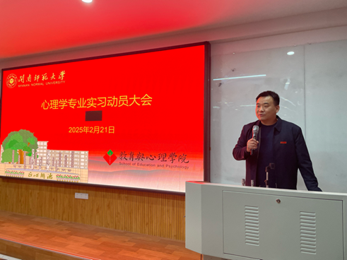 为进一步加强心理学专业学生的实践能力,促进理论与实践的结合,我院心理学专业于2月21日晚上在逸夫楼405召开专业实习动员大会。刘磊副院长、各实习分队指导老师、辅导员陈钰煌和王文伟、本学期实习的2022级心理学专业本科生及2023级应用心理专业硕士研究生参加大会,动员会由心理学系副主任陈志英主持。