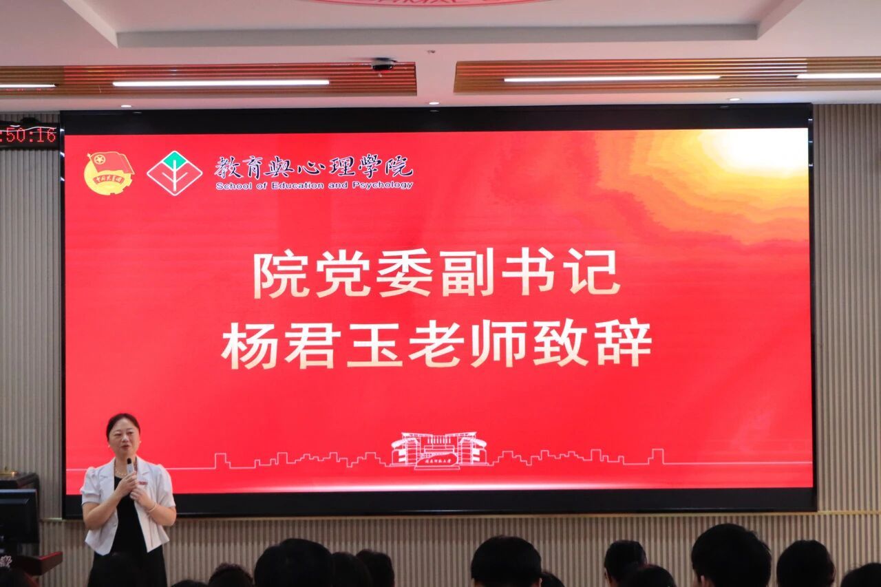 杨君玉对本次评选大会进行总结点评。她高度肯定参选同学们的辛勤付出与优异成绩,勉励大家始终保持蓬勃的学习热情,以“向下扎根、向上生长”的姿态逐梦前行,充分发挥青春榜样的示范引领作用,传递奋斗正能量。她指出,全体同学应以优秀学子为标杆,从他们的奋斗事迹中汲取力量,向阳而生、逐光而行,展现新时代师范生的责任担当,在更广阔的天地间绽放青春的光芒,为教育强国建设注入蓬勃动能。