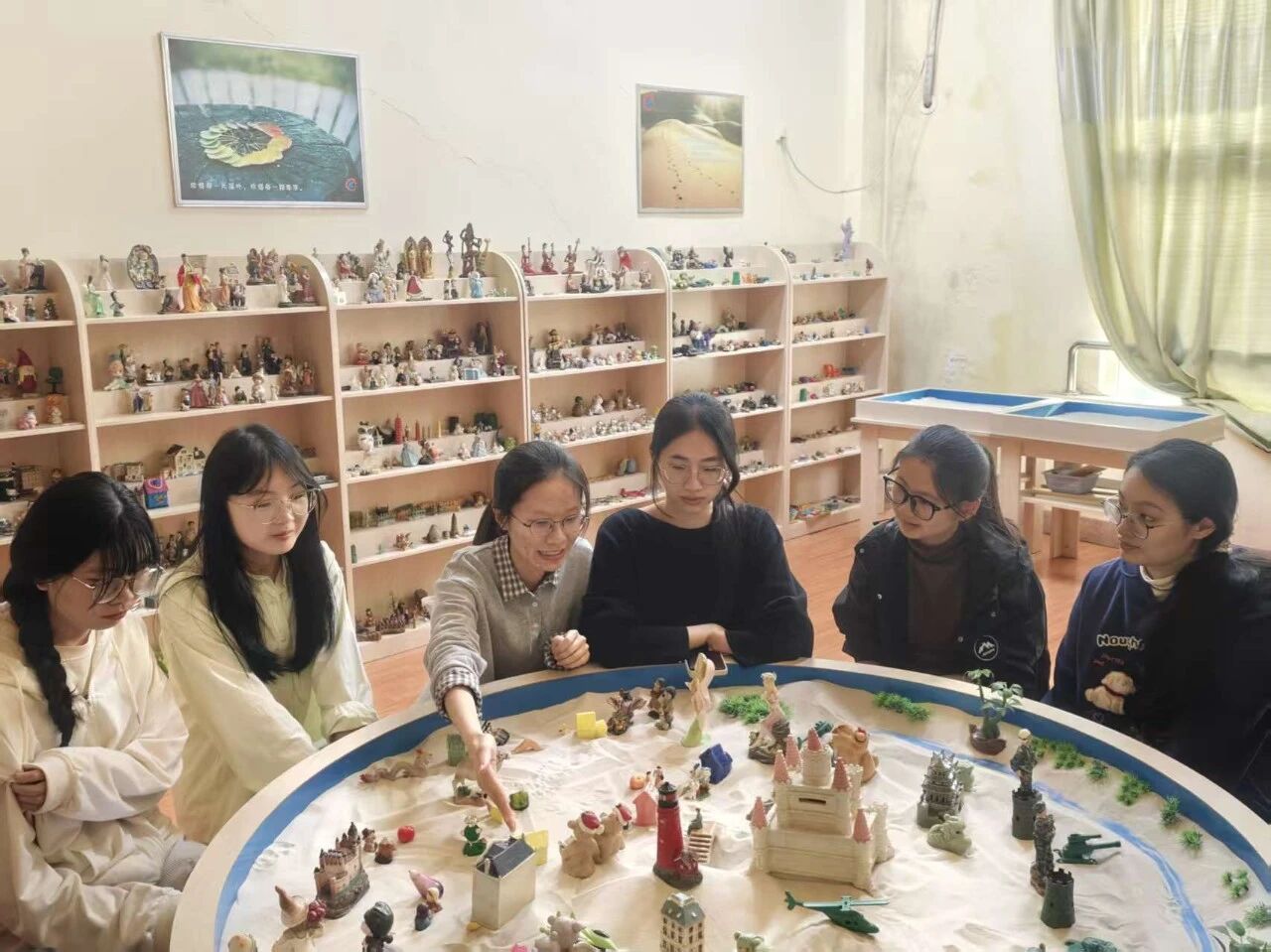 3月22日,我院研究生会于芙蓉楼308举办“沙绘山河・同心共圆”主题活动。活动围绕“铸牢中华民族共同体意识”这一核心主题,深度融合我院心理学专业特色,精心设计了“同心共筑”团体箱庭模拟与“心语寄山河・祝福献祖国”两大趣味环节。在团体箱庭环节,参与者围坐协作、各抒创意,以细腻的箱庭创作勾勒出民族团结、山河锦绣的美好图景;在祝福书写环节,大家手持彩笔,在祖国常青树上写下对祖国发展的深情期许与真挚祝福,在沉浸式的体验中从“心”感悟民族团结的磅礴力量,让家国情怀在互动与表达中深深扎根心底。