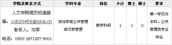 安徽工程大学人文学院2016年人才招聘